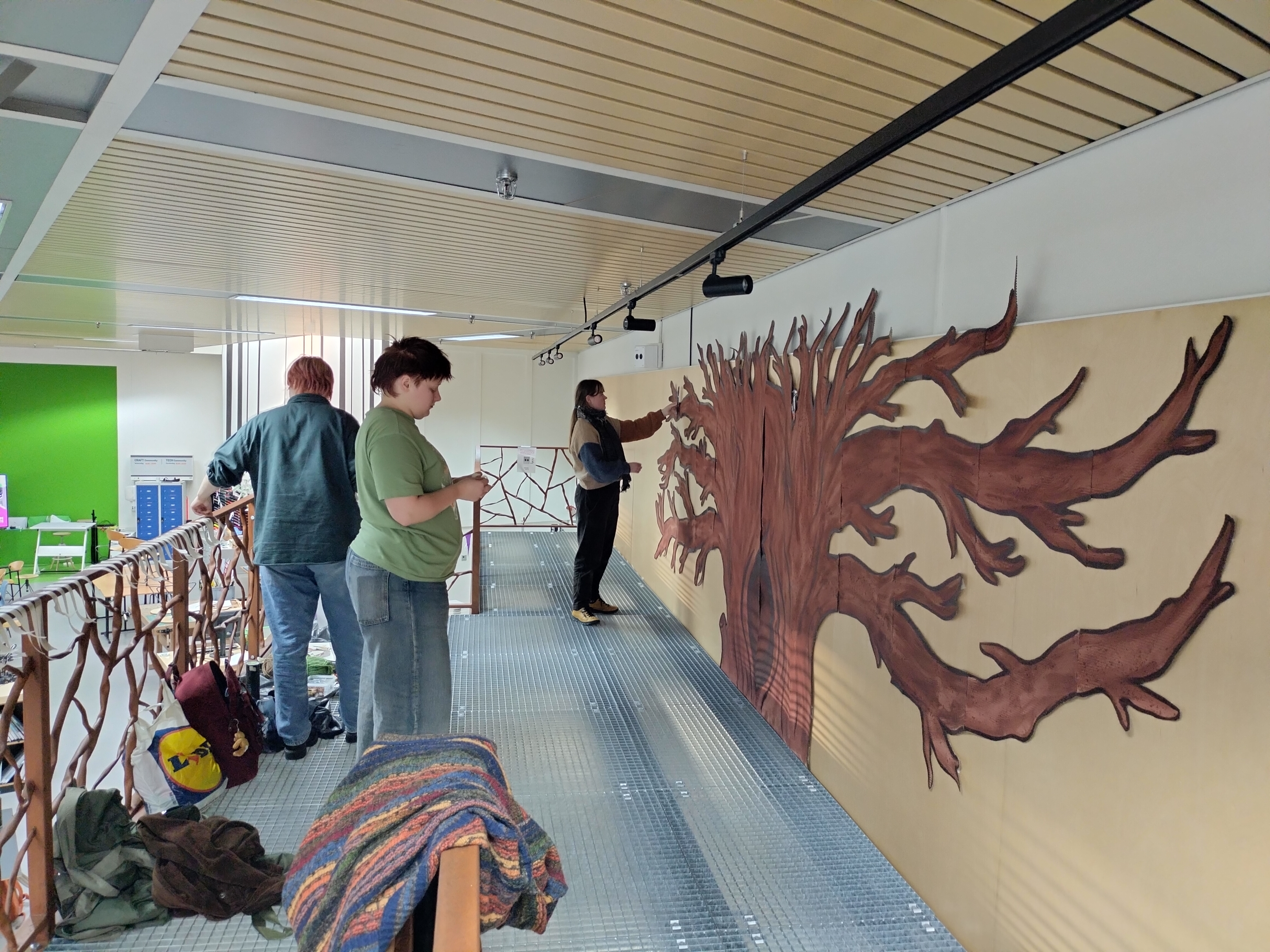 grootste deel van de expo (de boom) op de muur bevestigen. De markt zelf heb ik een kerstkaartje voor gemaakt en daar verkocht. Dit ging echt beter